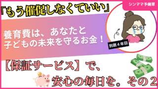 シングルマザー もう悩まない!子どもの権利としての養育費、どう守る?【養育費保証サービス】 こんにちは。シングルマザーを目指している、子だくさんママのろびんです。 前回の記事では、「元パートナーの同意なしで利用できる【養育費保証サービス】」についてお話ししました。 「もう養育費を催促したくない…」そんなあなたへ。元パートナーの同意... 2025.11.10 シングルマザー離婚